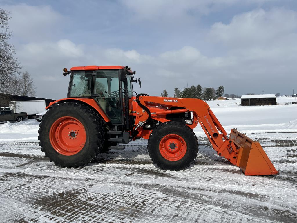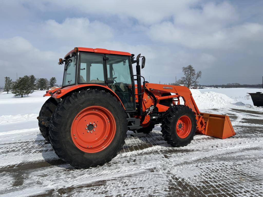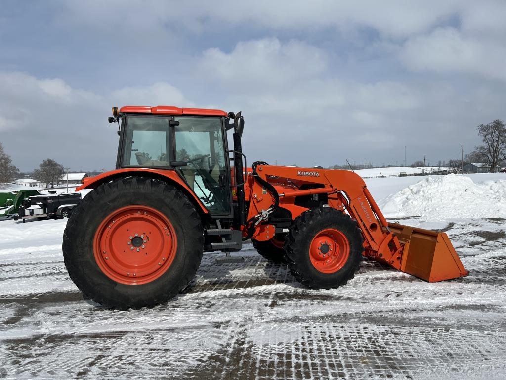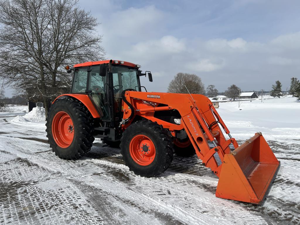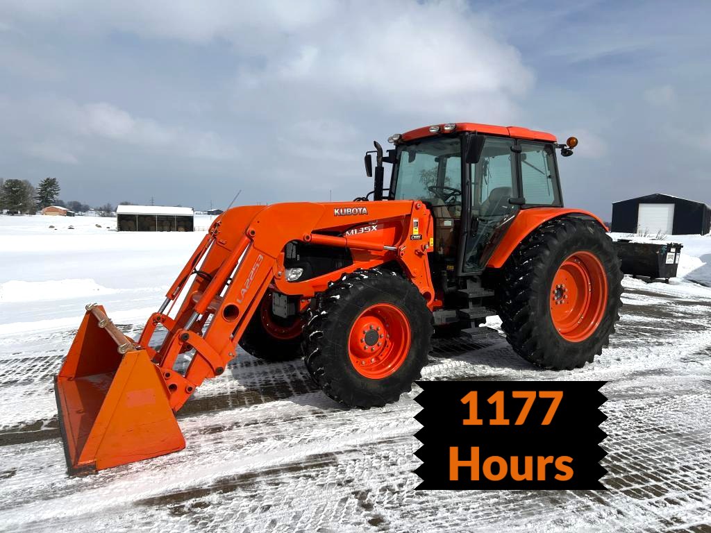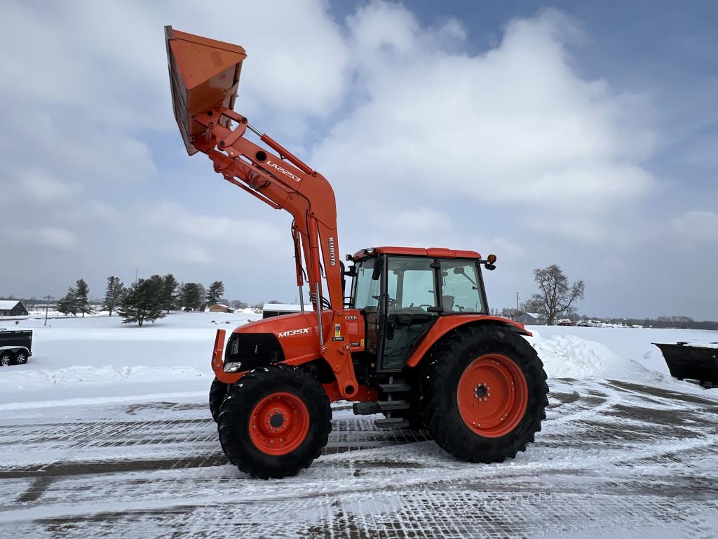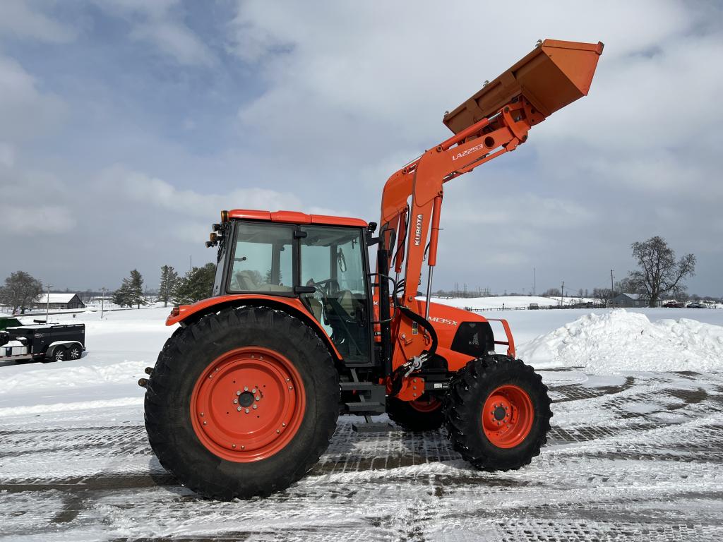 A well-equipped Kubota M135X with low hours, MFWD, powershift transmission, and loader—ready for field work or chores.