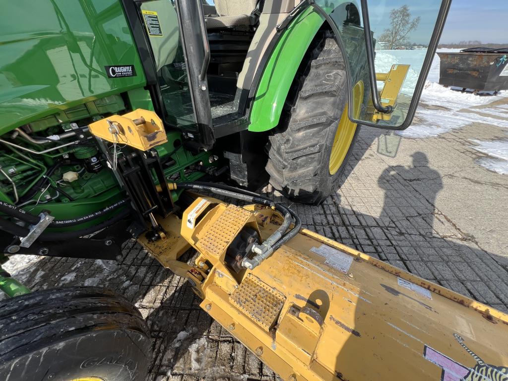 A versatile John Deere 5100M package equipped with Tiger triple flail mowers — an ideal setup for roadside, pasture, and right-of-way maintenance.