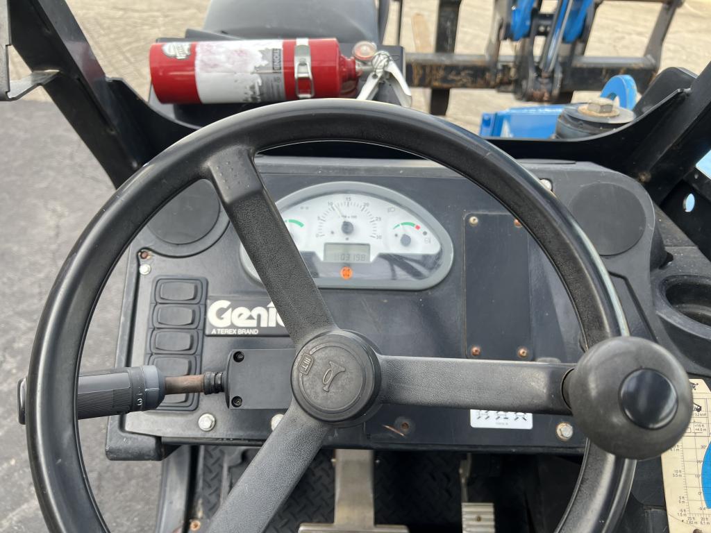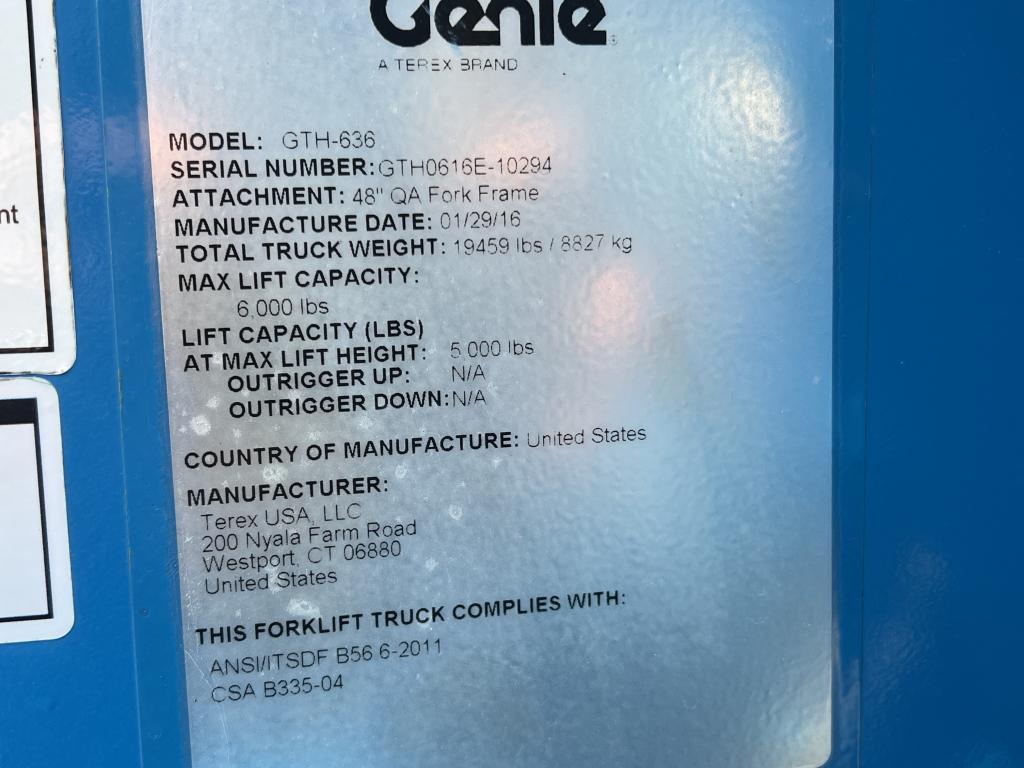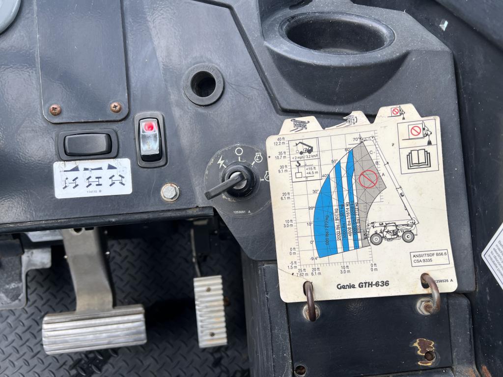 OS, 4X4, All Wheel Steer, 3 Speed Powershift, 3115 Hours, 74 Engine HP, 6000LB Lift, 36FT Reach, 60″ Quick Attach Pallet Forks, Auxiliary Hydraulics, Cradel Leveling, 4 Fenders, 370/75-28 Foam Filled Tires @ 75%