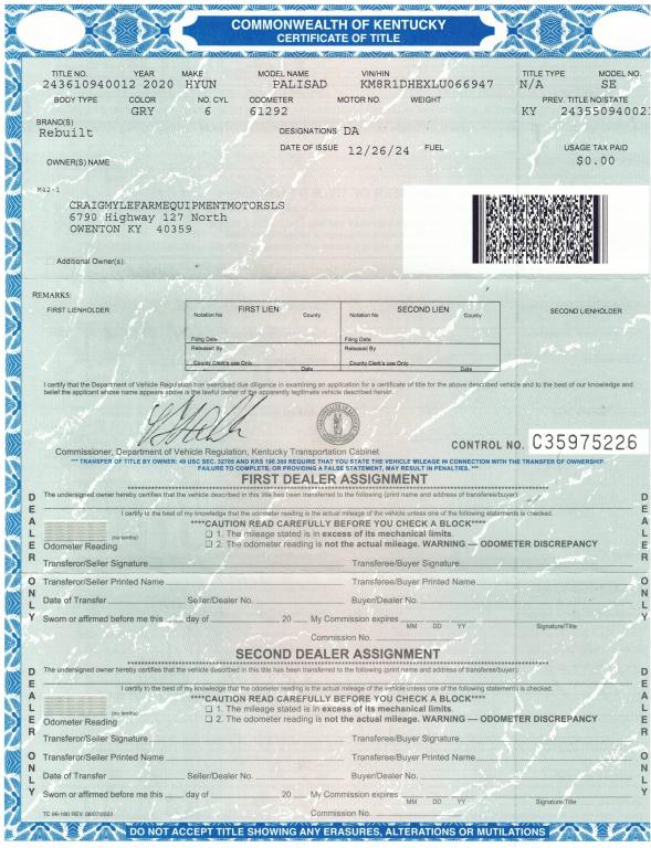 3.8L GDI V6 291 HP Engine, 8 Speed Auto Trans w/Paddle Shift, AWD, 62601 Miles, AM/FM Bluetooth Radio, Steering Wheel Controls, 3rd Row Seating, Reese Hitch, Alloy Wheels, 245/60R18 Tires @ 40% (Rebuilt Title)